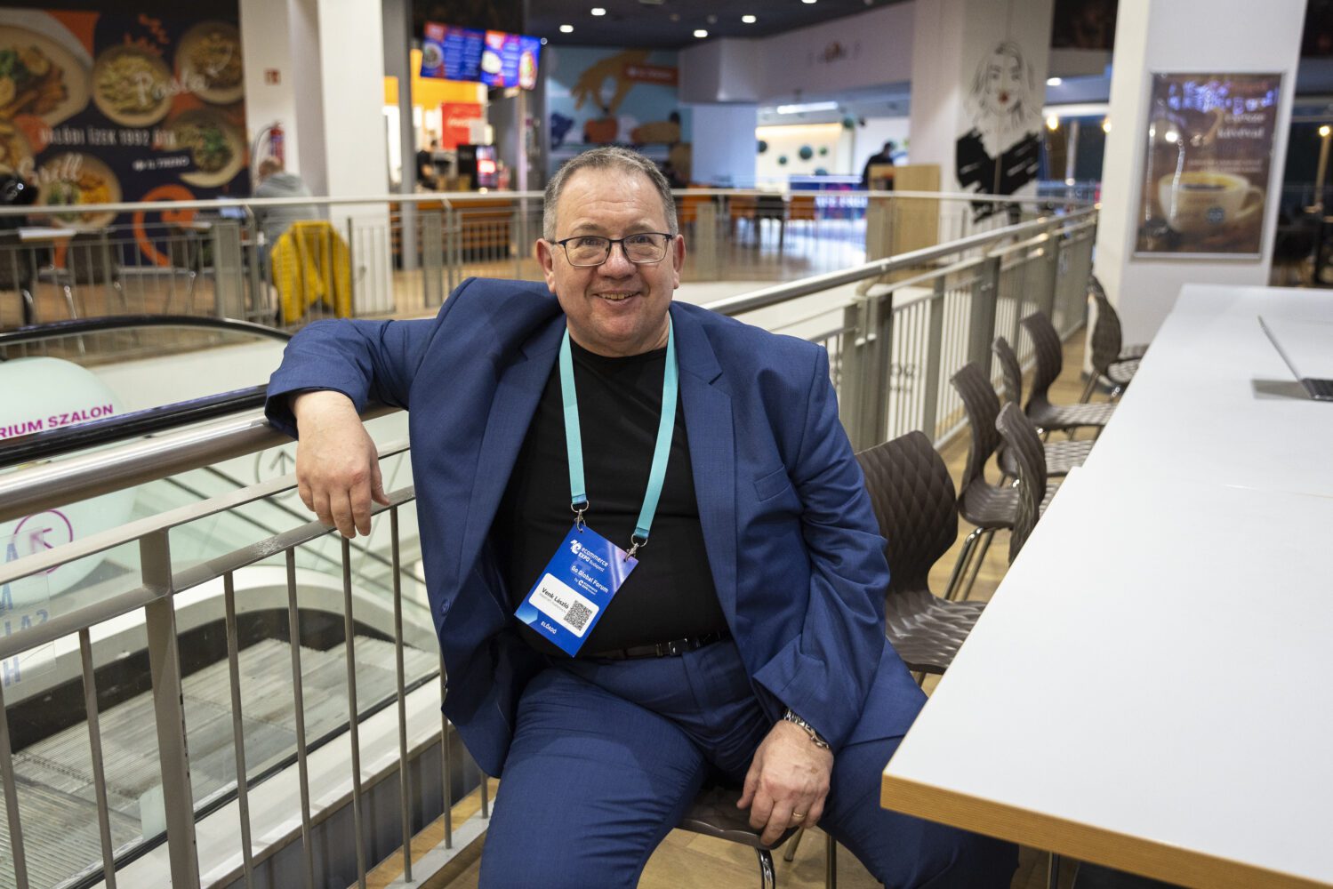Számítottunk rá, hogy az egyik konzultációs asztalnál ott találjuk Krausz Miklóst (VirtualJog) is – mint eddig minden évben, most is itt van; épp csak váltunk néhány szót, kevés az üresjárat. Megpihenni éppenséggel Venk Lászlót (Adlogic) láttuk először, ő is szinte állandó jelenlévője e fórumoknak. Dél körül a rendezvénytér körüli külső aurában üldögélt szólóban; az asztalnál épp a következő találkozójára várva szívott egy kicsit kevésbé webáruházas-sűrű, friss levegőt.